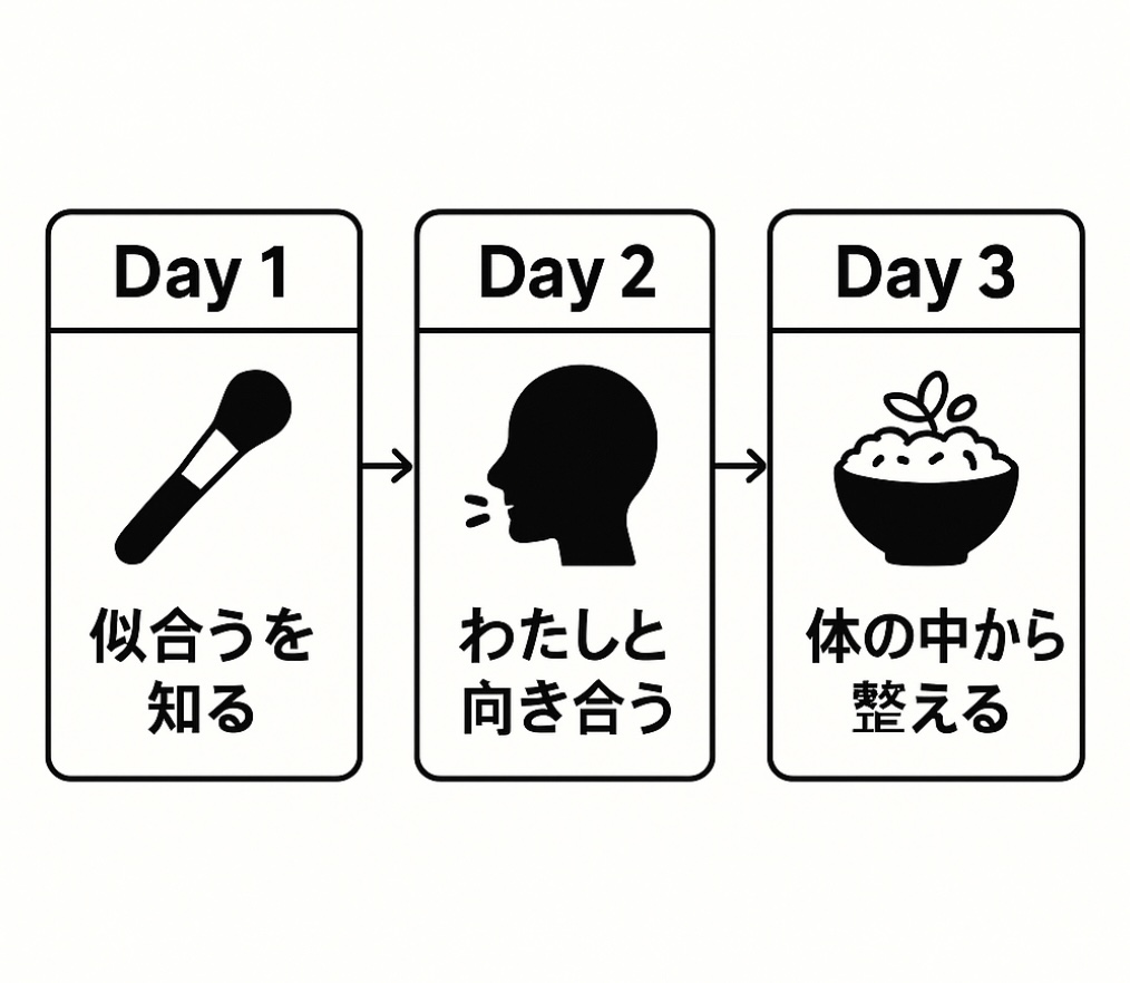 だからRe:Meは、見た目を整えるところからスタートして、内面を整え、最後に体の根っこにアプローチする3日間の構成になっています。